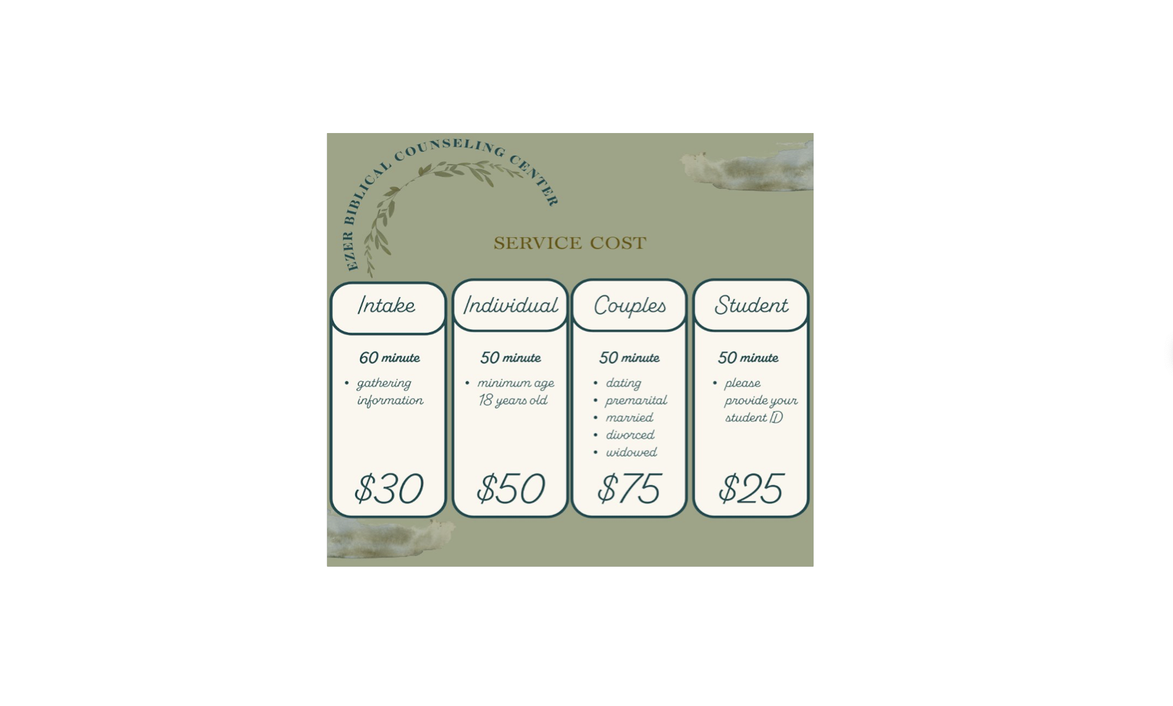 I ask that if you need to cancel an appointment that a minimum of a 24 hour notice given in order to respect the time of the biblical counselor. If a 24 hour notice is not given, there may be $25 deposit prior to the next appointment. Deposit will be returned after 3 consecutively kept appointments. I understand that unexpected things do pop-up, and the deposit is waivable by your counselor on these occasions.